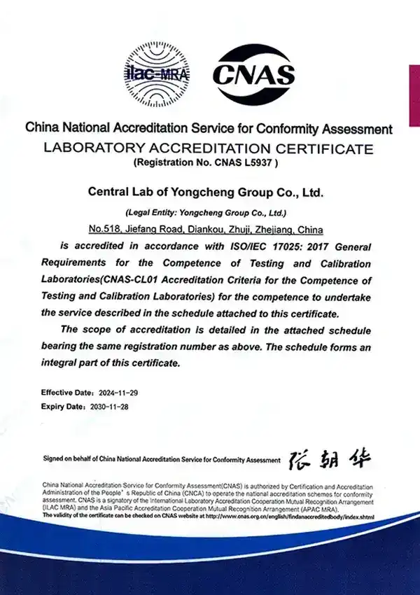 Gracias a la acreditación CNAS, nuestro laboratorio realiza ensayos reconocidos internacionalmente a través de ILAC-MRA, con alcance en 105 países y economías. Entre sus capacidades están la determinación de composición química, dureza y resistencia a la tracción, estudios metalográficos, pruebas no destructivas como UT, PT y VT, y la inspección geométrica de piezas mecánicas, todo siguiendo rigurosamente normas internacionales como GB, ASTM, ISO, JIS y YS.